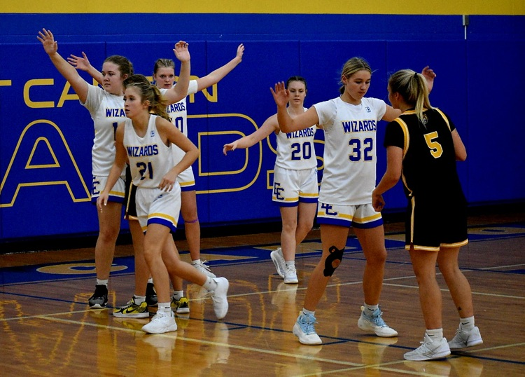 Team effort win as your Wizards beat Heartland Christian 53-31. The Wizards were strong around the boards as the team ended with 54 rebounds. Leading the way for the Wizards was Senior, Chelsea Barnett with 20 points and 12 rebounds. Senior, Kynsie Pero finished with 18 points and did well on both sides of the floor with 6 assists and 5 steals. Sophomore, Caidynce Murphy had 7 rebounds, 4 assists, and 2 steals. Freshman, Kaitlin Carter added 4 steals as well. Sophomore, Ava Foss came strong off the bench and hit a big 3 to change the momentum.